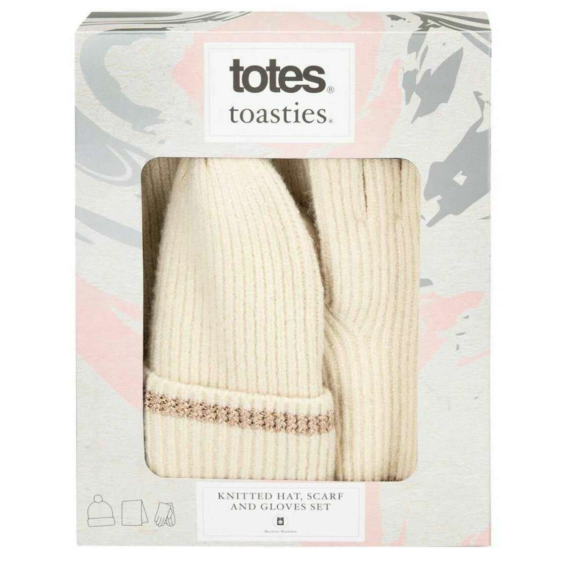 Totes Toasties gebreide muts, sjaal en handschoen cadeauset - Havercrème