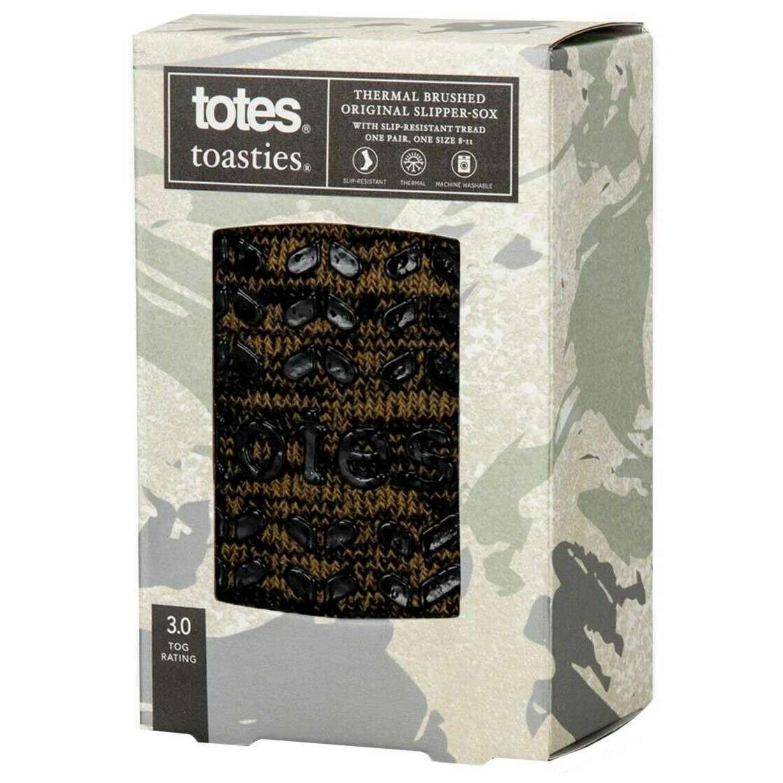 Totes Toasties Thermisch geborstelde originele pantoffelsokken - Kaki Groene Twist