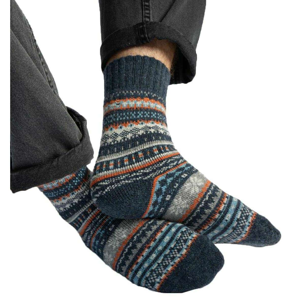 Totes Toasties Wolmix Fair Isle Slippers Sokken - Marine/Beige