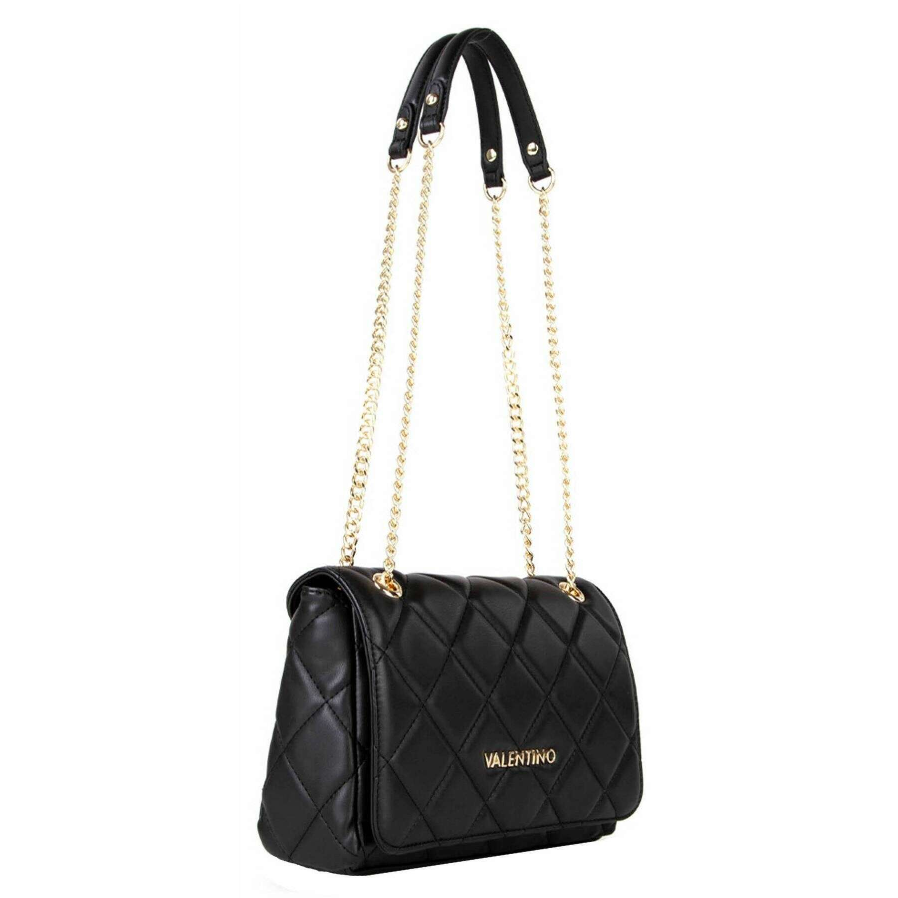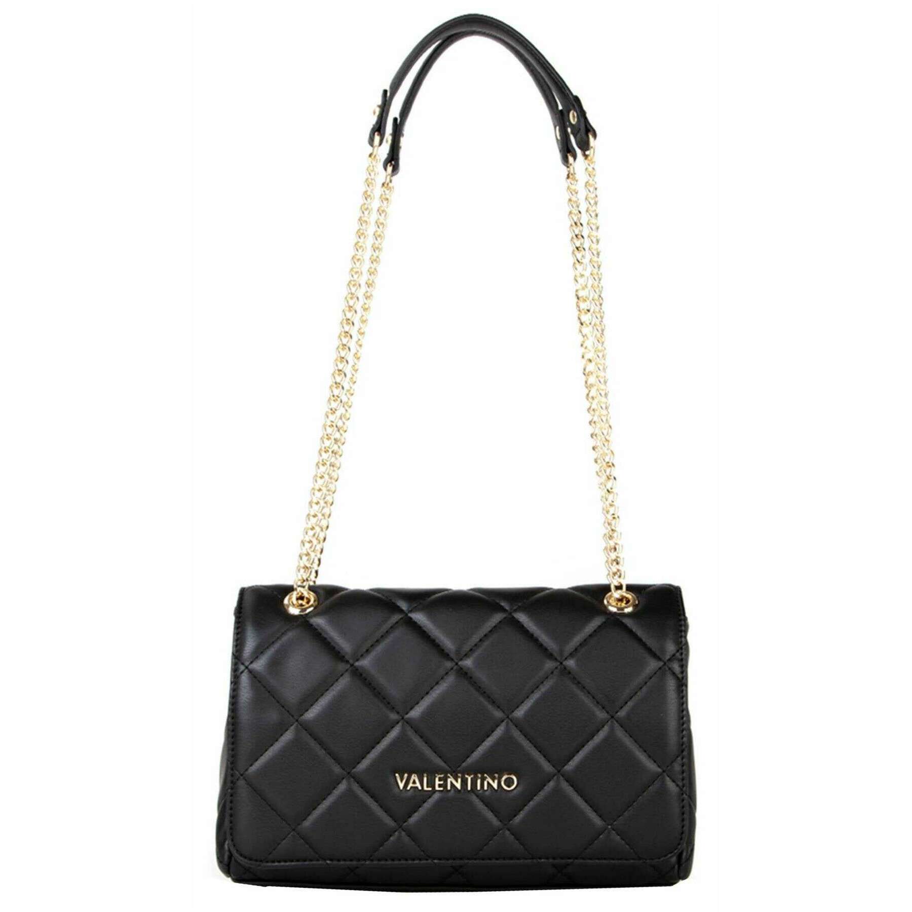 Deze dames ocarina flaptas is gemaakt van 100% polyurethaan, uitgevoerd in een zwarte kleur en is van het merk Valentino. De afmetingen zijn 17 cm (hoogte) x 25,5 cm (breedte) x 9 cm (diepte). Alle tassen worden compleet geleverd in een Valentino-verpakking. De Valentino Ocarina Flap Bag - Zwart straalt elegantie uit en geeft je de perfecte, stijlvolle metgezel voor alle gelegenheden. De prachtige, gewatteerde textuur biedt tijdloze klasse, en u zult dit willen oppakken wanneer u het huis verlaat. De kettingriem kan als handtas worden gebruikt, over je onderarm worden gedrapeerd of worden getrokken tot een langere riem die over je schouder hangt, waardoor je allebei een fijn accessoire hebt om je essentiële spullen in op te bergen.