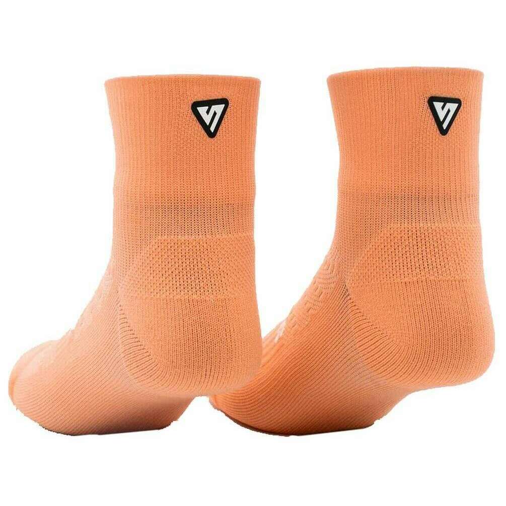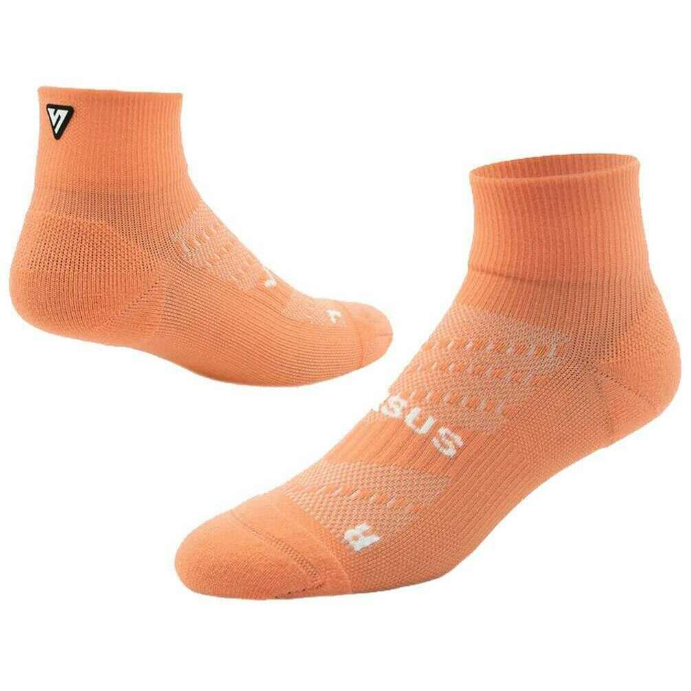 Deze perzikkleurige, unisex hardloopsokken, aangeboden door het merk Versus, zijn gemaakt van 68% nylon, 27% polyester en 5% elastaan. Ook de perzikkleurige oranje sokken zijn ontworpen in een effen patroon. Het wordt aanbevolen om op 30 graden te wassen om deze sokken in goede staat te houden. Alle sokken worden compleet geleverd met versus-sokkenlabels. De Versus Running Quarter Socks - Peachy Orange hebben stijl en hoogwaardige technologie, ontworpen om je voetboog en enkel te ondersteunen tijdens vrijetijdskleding of intensieve activiteiten zoals hardlopen, wandelen en racen. Deze oranje hardloopsokken zijn ademend en comfortabel door het naadloze en korte ontwerp.