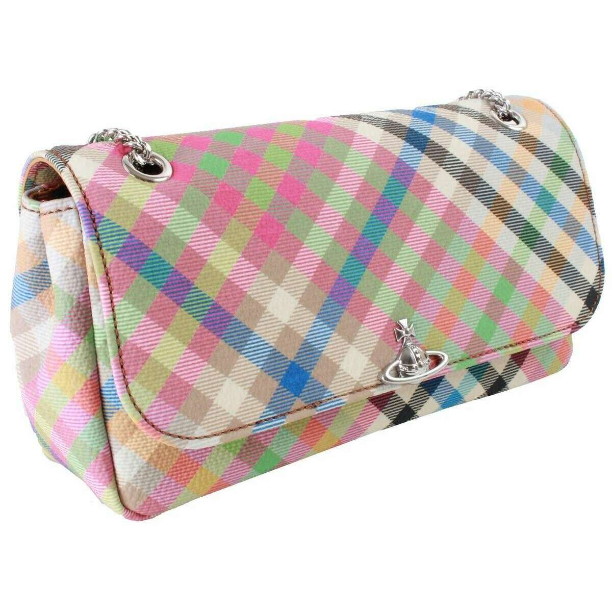 Vivienne Westwood Heather Crossbody Portemonnee met Geruite Ketting - Beige/Roze/Blauw