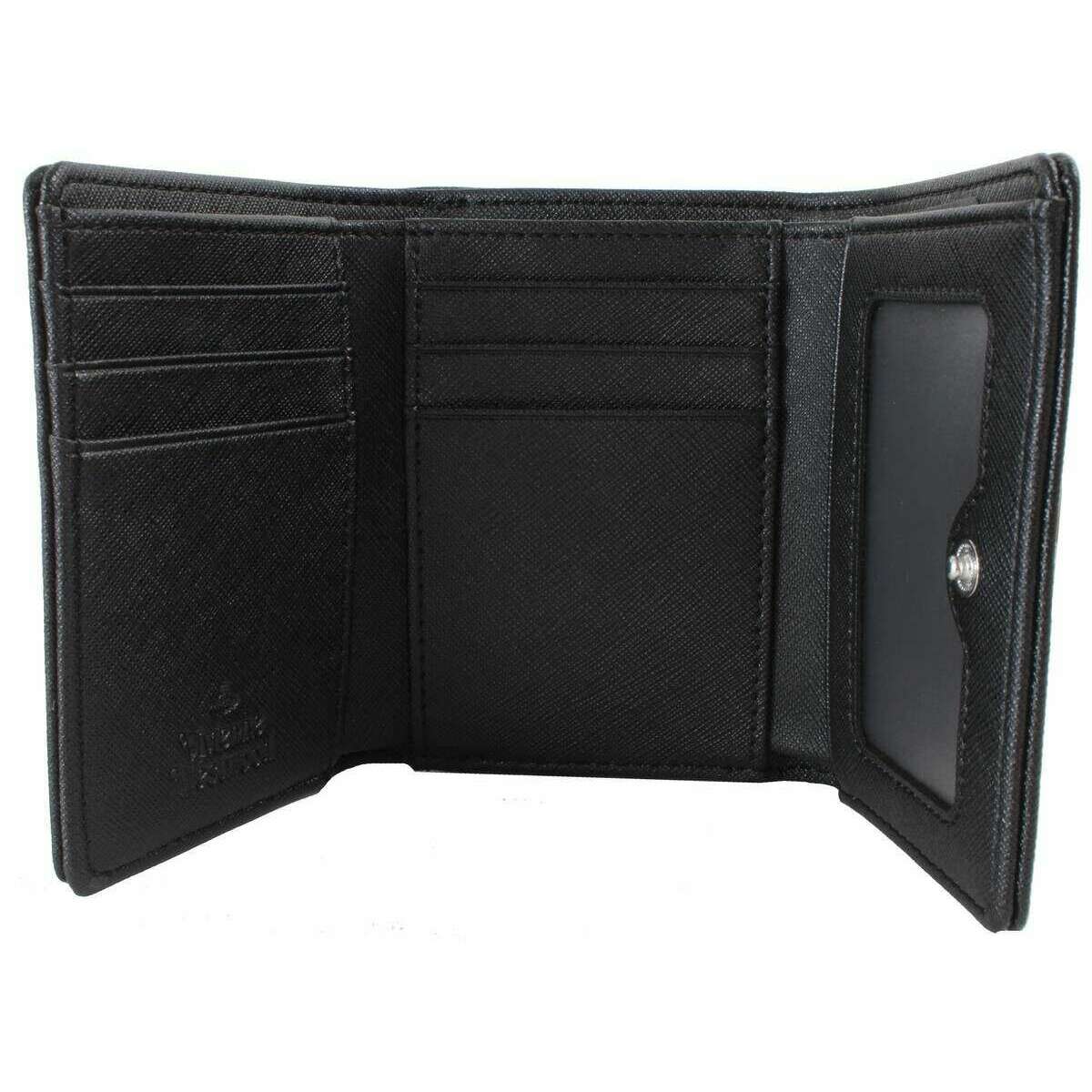 Deze saffiano portemonnee met klein frame van Vivienne Westwood is gemaakt van zwart 65% polyurethaan en 35% katoen en is perfect voor vrouwen en een must-have. De afmetingen zijn 9 cm (hoogte) x 11 cm (breedte) x 3,5 cm (diepte). Alle portemonnees worden compleet geleverd in Vivienne Westwood-verpakking. De Vivienne Westwood Saffiano portemonnee met klein frame - zwart is een uitstekende keuze voor je dagelijkse tas. Als je hem opent, heb je 6 kaartsleuven, een ID-venster en een vakje voor bankbiljetten. Ook is er een extern muntengedeelte met gesp aanwezig, zodat u uw benodigdheden onderweg gemakkelijk kunt ordenen. Deze tas is prachtig versierd met de iconische bol aan de voorkant, waardoor het een must-have is.