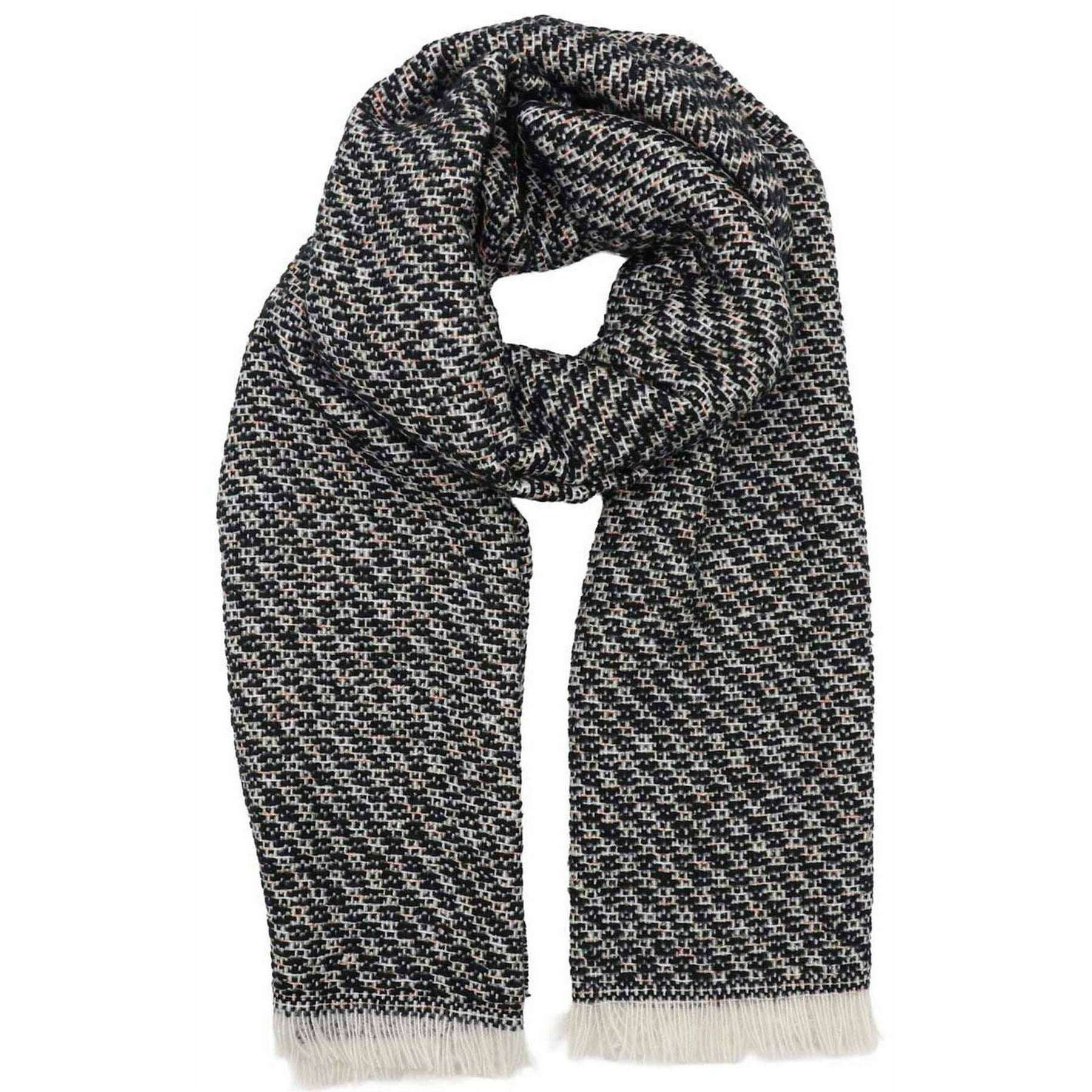Zelly Dashed Line Winter Gewicht Print Sjaal - Zwart