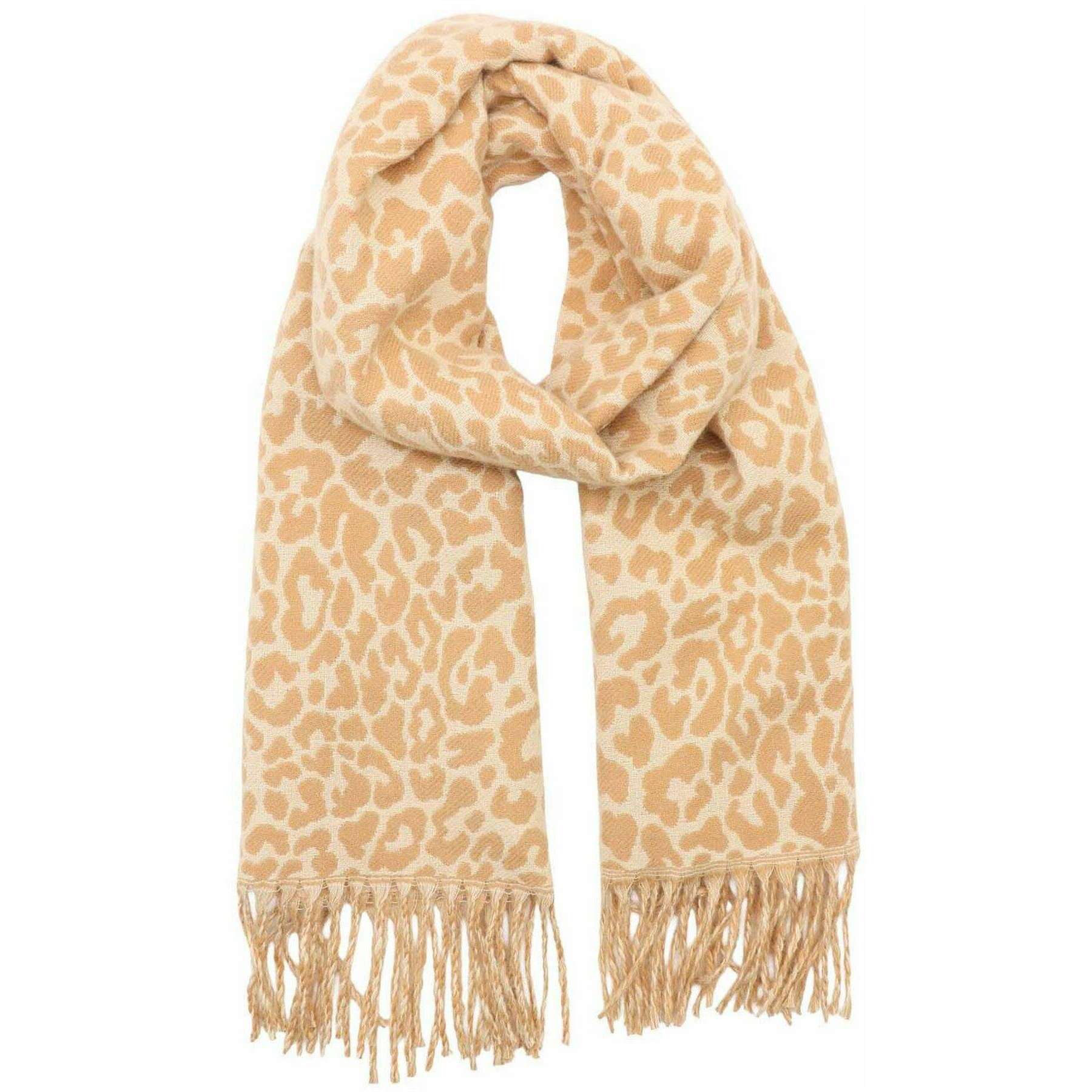 Zelly Sjaal met wintergewichtprint en luipaardlijn - Crème